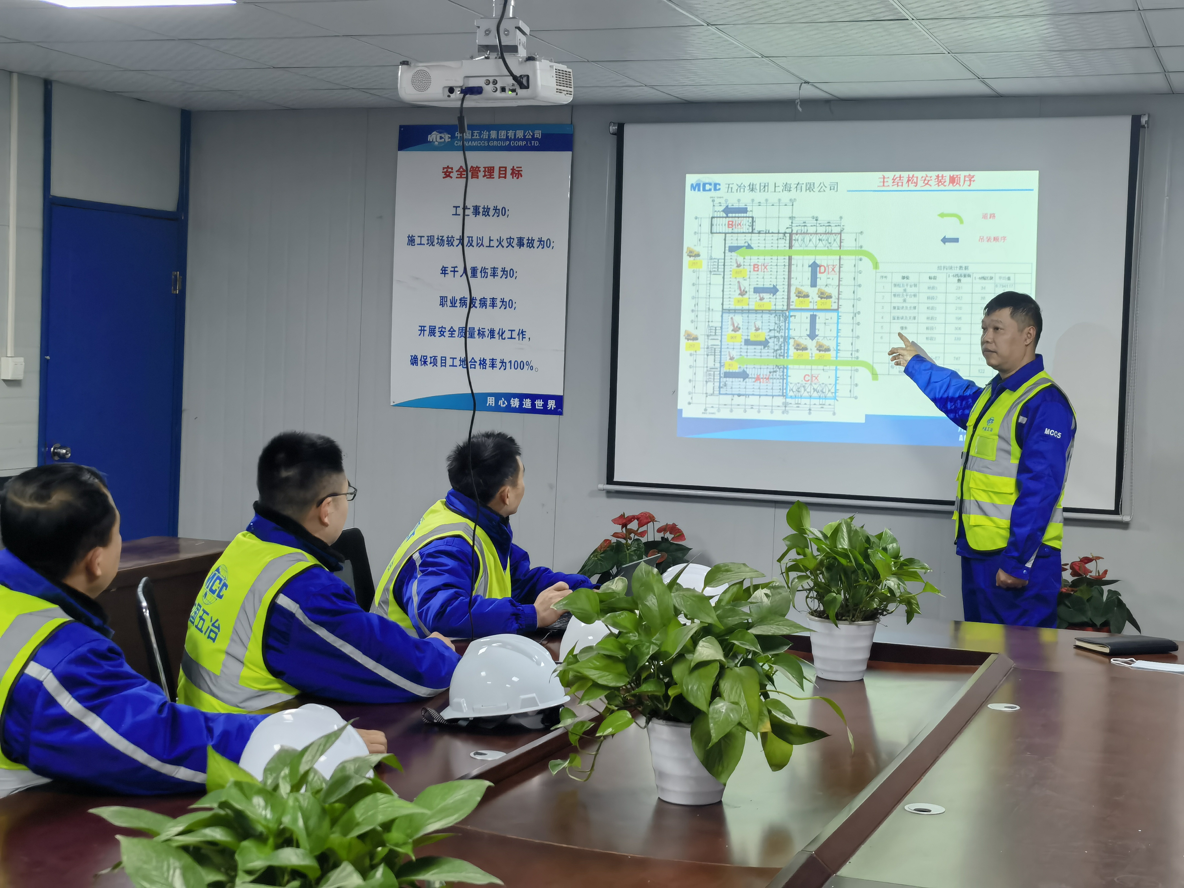 正式开工后,项目部按照各项任务倒排工期,细化时间节点,全力满足业主的进度要求。为实时掌控现场进度状况,黄能在保障施工安全和质量的前提下,组织管理人员通过精细管理和技术创新,在施工组织和技术保障上做文章,应用BIM和P6软件,实施可视化施工和数据量化监控管理,提高项目管理效率。面对复杂多变的施工情况,黄能坚持每晚组织召开“天天读”会议,对当天工作中遇到的问题进行复盘,组织讨论解决,并根据实际情况不断调整优化施工计划。项目初期由于配套设施尚不完善,施工现场时常会发生断电,夜晚的工地一片漆黑,黄能带头打开手机照明,和其他管理人员的点点灯光汇聚到一起,照亮了施工图纸和方案。临港夜晚的光亮虽然微小,但足以穿过黑夜,照亮整个项目走向明天的道路。在这样的氛围下,黄能和项目团队仅用时223天就完成了特斯拉上海超级工厂联合厂房5.1及附属工程的建设,实现了设备工艺进场并顺利投产,以最优工期获得了业主的高度认可和赞扬。